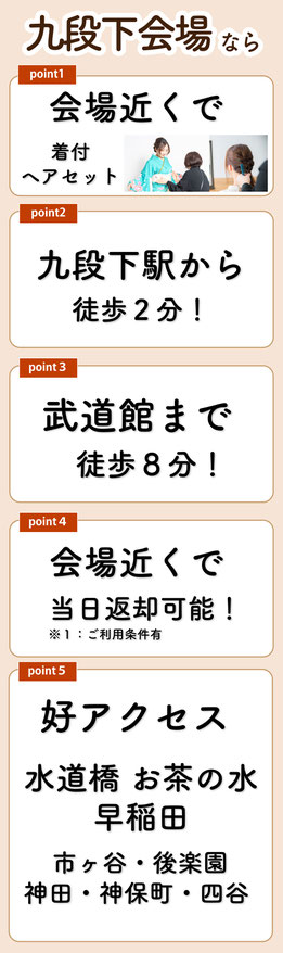 ※1:九段下会場当日返却可能です。事前ご予約制&別途料金頂戴いたします。詳しくはお問い合わせください。