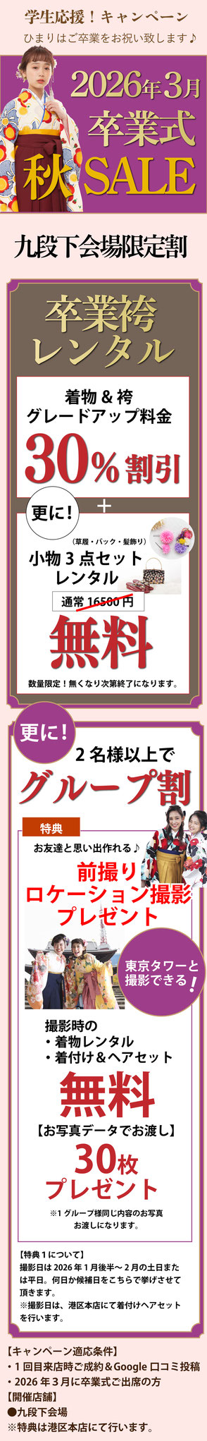 2026年3月武道館・九段下・早稲田大学・水道橋・後楽園・お茶の水へのアクセス楽々!卒業式ご出席の際は、まだ間に合う!卒業袴をレンタル可能!ご予約受付中!