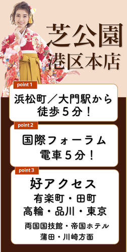 まだ間に合う!卒業式の卒業袴レンタル、卒業袴着付けヘアセット予約可能です。武道館・早稲田大学・九段下・有楽町・東京国際フォーラム・メルパルクなど卒業式会場へ好アクセス!